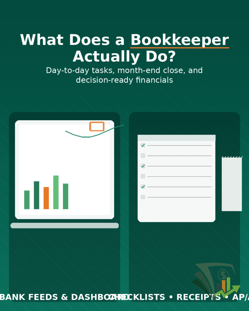 What Does a Bookkeeper Actually Do? A GTB long‑form guide for owners and operators ━━━━━━━━━━━━━━━━━━━━━━━━━━━━━━━━━━━━━━━━━━━━━━━━━━━━━━ Short answer: Bookkeepers turn your daily chaos into clean, decision‑ready numbers. They record transactions, manage A/R (money in) and A/P (money out), reconcile every account, and deliver audit‑ready financials so you can run the business with clarity—and your accountant can […]